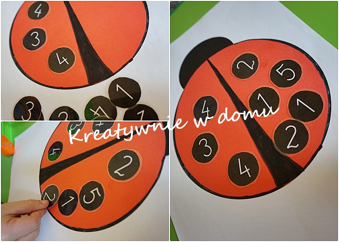 Możemy dziecko poprosić aby położyło na biedronkę wszystkie kropeczki z konkretną cyferką np. 4